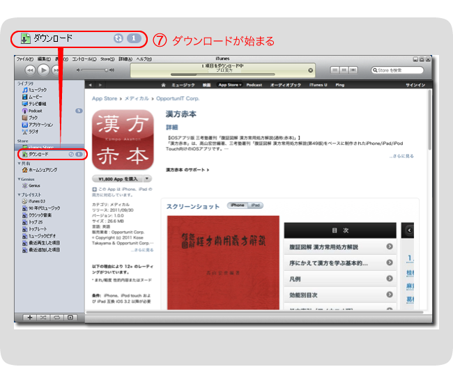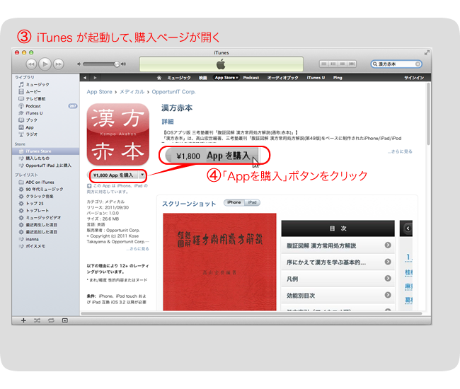 (3) iTunesが起動し、「漢方赤本」の購入ページが開きます。