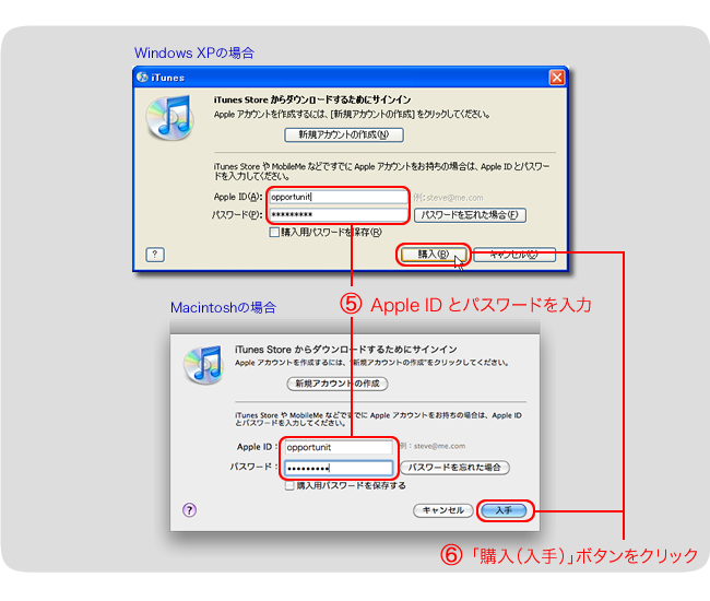 (5) Apple IDとパスワードを入力します。