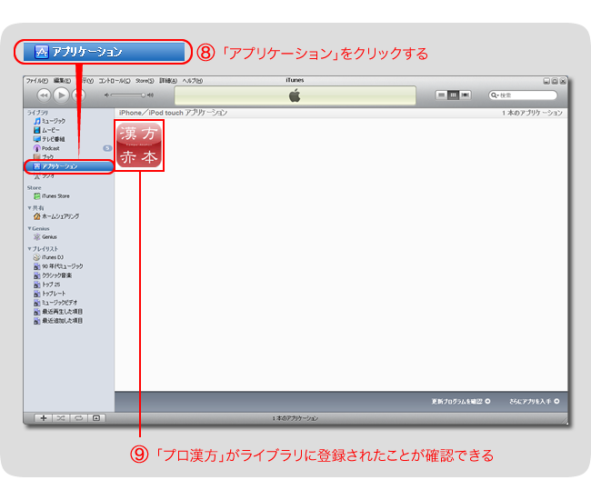 以上でダウンロードは完了です。iPhoneと同期をとって「漢方赤本」を登録します。