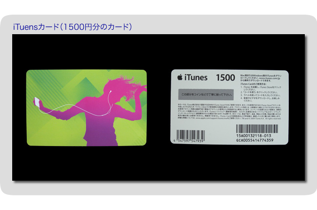 はじめに、iTunes カードを電器量販店やセブンイレブンなどで購入します。カードの裏面にある銀色の部分を削り、コードを確認します。